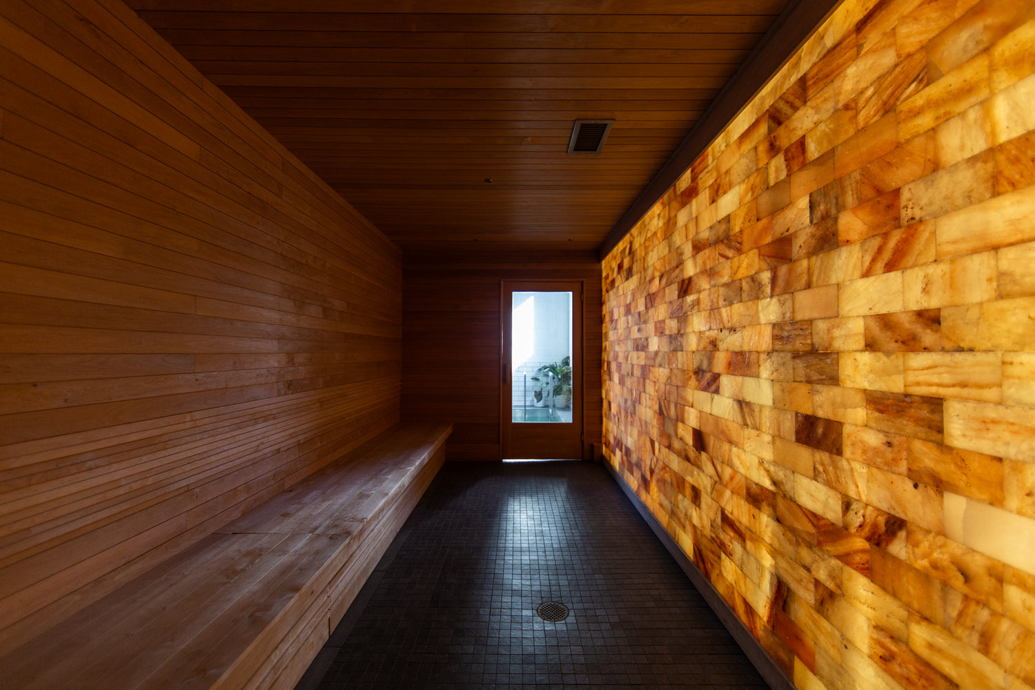 The social dynamic of our space was also a big consideration. Saunas are meant to be a communal experience, and we wanted to make sure our layout facilitated such. The bench arrangements and lighting choices in the saunas are designed to enhance the feeling of connection, whether you’re alone, with friends, or making new acquaintances. We often say we want people to be able to explore the space and use it in the way they’re most comfortable. This sentiment extends to bather safety too! All of our design elements are chosen for practicality as much as for beauty, like on-brand tiles with an impressive anti-slip rating.