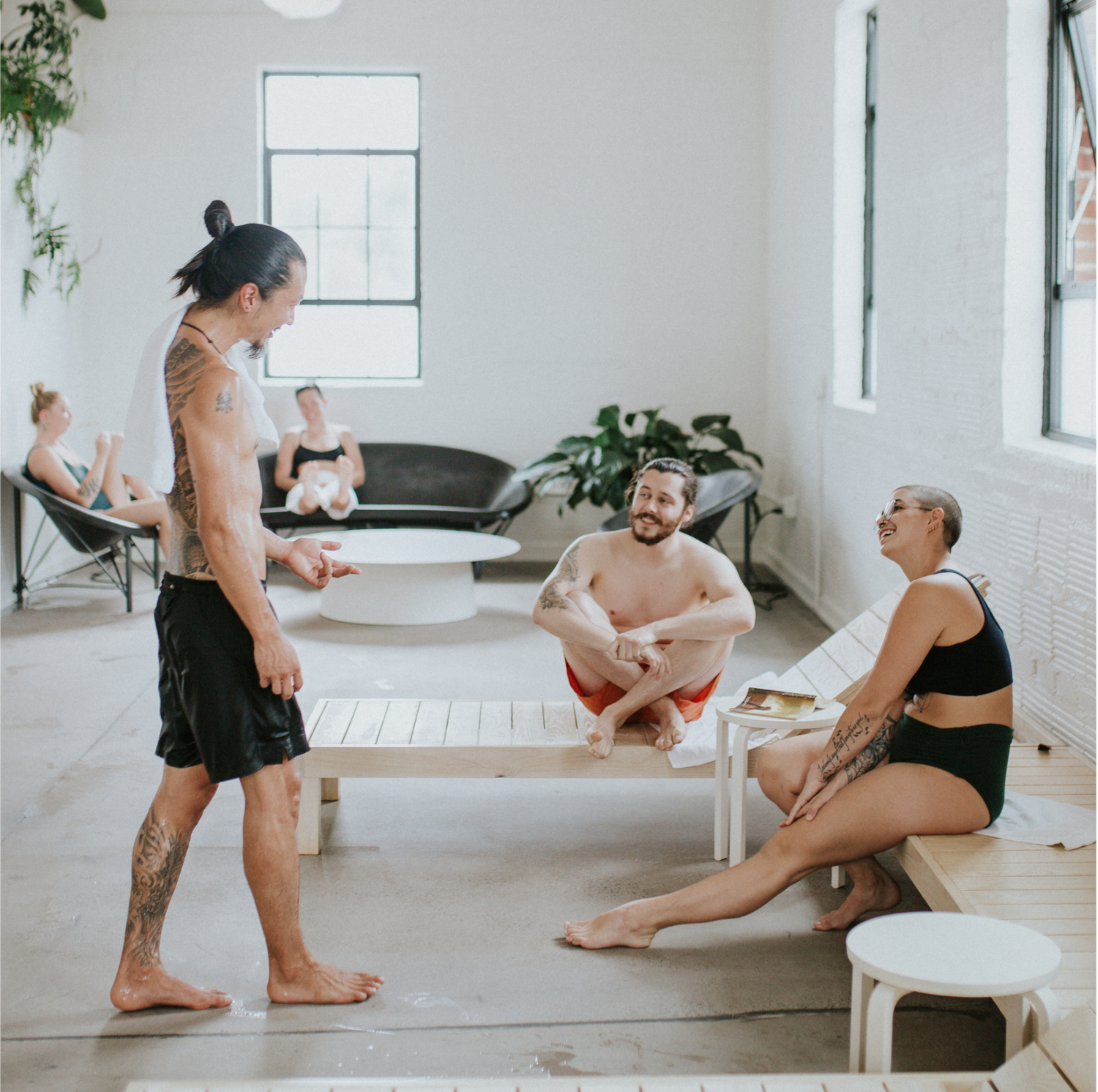In Durham, with these relationships and experience at our back, we’ve refined some of the elements we piloted in Asheville by reflecting on our programming. We spend a lot of time considering how each phase of the experience would feel for guests. Removing any potential for bottlenecks by, for example, placing rinse showers between saunas and plunges was major, helping us create a true seamlessness from check-in and changing to rinsing, bathing, and checkout.